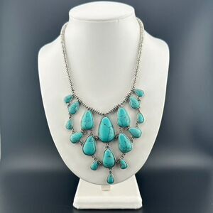 Lucky Brand Faux Turquoise Silver tone Statement Costume Fashion Necklace. Great condition. Adjustable in size with extender chain.