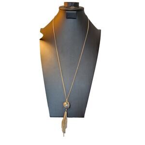 Lucky Brand Two Tone Metal Scroll Filigree Ball Tassel Long Necklace. Pre-owned, this necklace is in excellent condition. Great as a wear alone or layering piece.