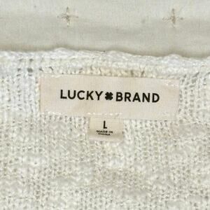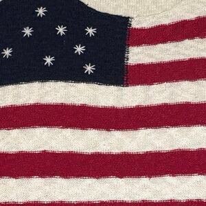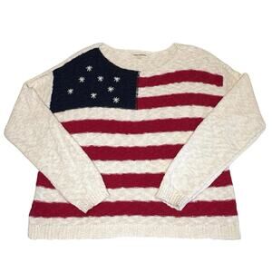Lucky Brand USA Flag Sweater Women's L | White Red Blue Knit Pullover Patriotic