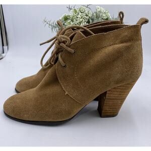 Lucky Brand Unitas Women's Size 7 Suede Ankle Lace Up Booties Brown Stack Heel