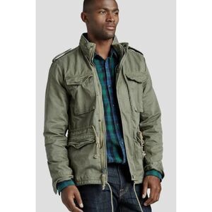Embrace rugged, timeless style with this classic Lucky Brand field jacket. The olive green color and four-pocket design give it an authentic military-inspired look, while the durable cotton-Tencel blend provides a comfortable, broken-in feel. This is the kind of jacket that gets better with time, a perfect layering piece that speaks to a sense of adventure. You can already see yourself wearing this jacket, feeling effortlessly cool and ready for anything.