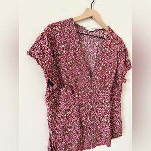 Lucky Brand V-Neck Button Front Blouse in Pink Multi Floral - Size XL