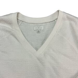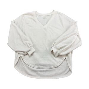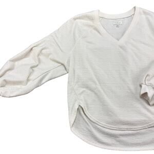 Lucky Brand V-Neck Fleece Sweater Sweatshirt Pullover Cream Womens Size M/M