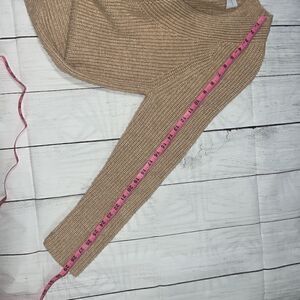 Good, preloved condition. Lucky Brand V-Neck Pullover Sweater Tan Knit Neutral Chunky Long. Textured yarns on a simple design. V-neck. Long sleeves. Knit. Leggings length.