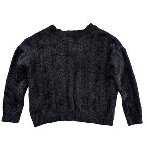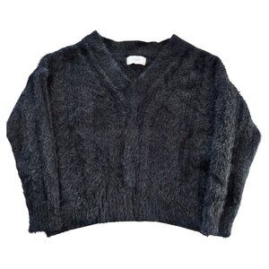 Lucky Brand V-Neck Relaxed Fit Soft & Fuzzy Eyelash Sweater - Jet Black