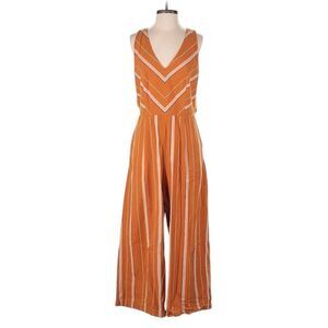Lucky Brand V-Neck Striped Jumpsuit in Orange and White size XS boho