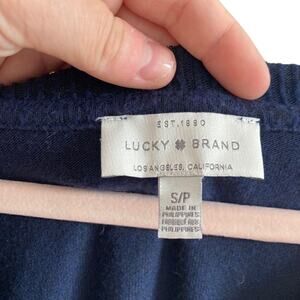 Lucky Brand V Neck Style Navy Dark Academia Pullover Preppy Women's Sweater SZ S