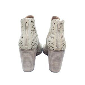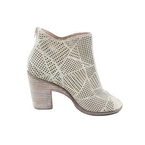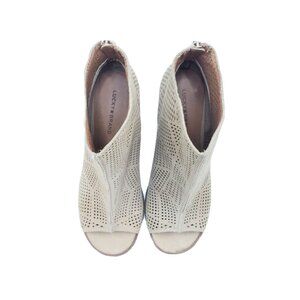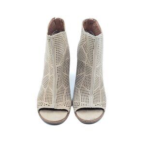 Lucky Brand Vacob Peep Toe Booties Beige Suede Cutout Heels Womens Size 8.5 M