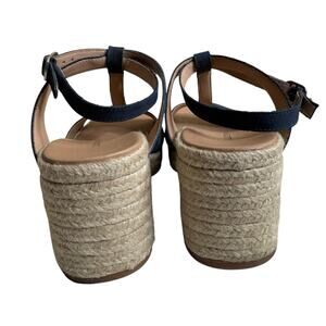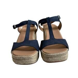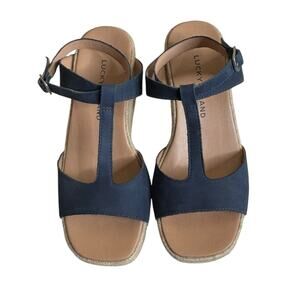 Lucky Brand Valki Peacoat Navy Blue Leather T-Strap Wedge Sandals Women’s 6.5
