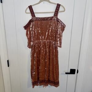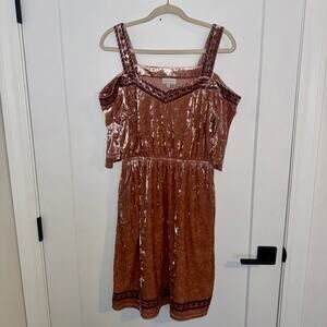Lucky Brand Velvet Dress Medium Cold Shoulder Sleeves Side Pockets Soft