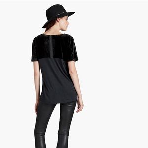 This is obviously your new favorite Lucky Brand Top! Made of super soft velvet and sewn with sheer silk in the back and a silver zipper.
