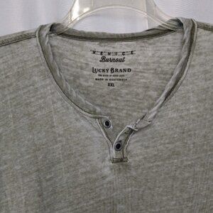 Lucky Brand Venice Burnout Henley XXL Gray T-Shirt Short Sleeve Casual