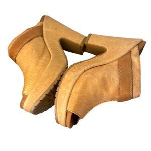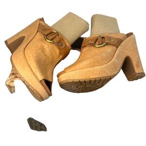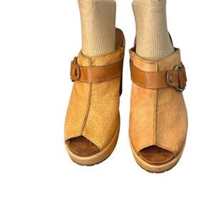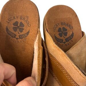 Lucky Brand Veronica Tan Leather Side Buckle Peep Toe Clogs
