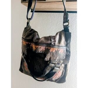 Lucky Brand Vintage Abbey Road Floral Crossbody Satchel Messenger Boho Aztec GUC.