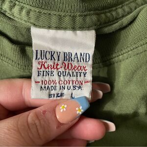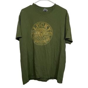 Vintage men’s size large lucky brand cotton olive graphic short sleeve t-shirt. Please review all photos for any signs of wear-pictured as is. Disclaimer: Any items with any wear/staining has not been treated, and unsure of ability to remove/treat condition. Comes from a smoke free home, bundle with other items to save & minimize shipping cost.