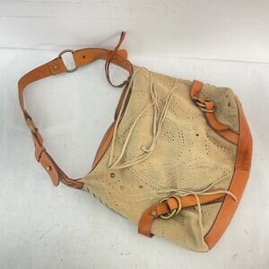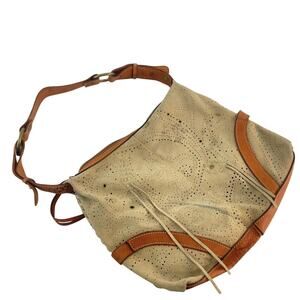 Lucky Brand Vintage Inspired Beige Leather Shoulder Bag - Preowned Womens