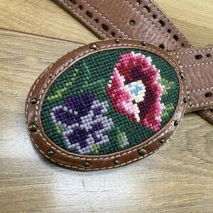 Lucky Brand Vintage Womens Belt XS Floral Needlepoint Buckle