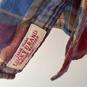 Vintage Y2K flannel shirt by Lucky Brand features pearl snap buttons and western vee details. Extremely soft.
