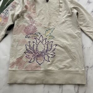 Lucky Brand Vintage Y2k Pullover Sweatshirt Sz S Cream Floral Scoop Neck Hoodie