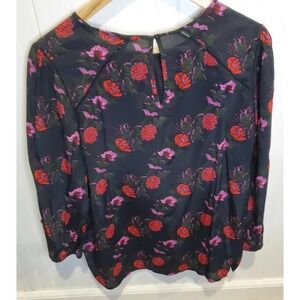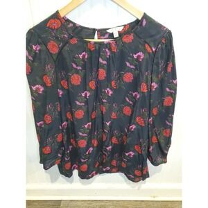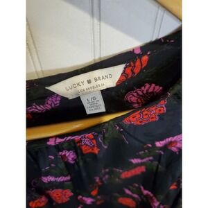 Lucky Brand Viscose Black Floral Print Top Blouse Flowy Womens Large