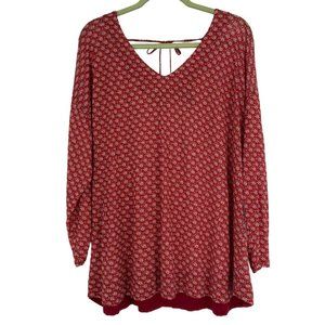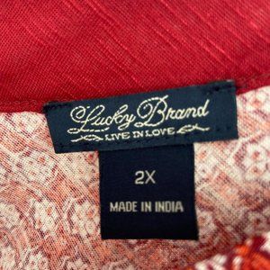 Lucky Brand V-neck Tie Back Tunic Orange 2X