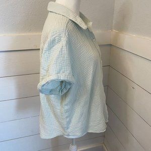 Lucky Brand Waffle Knit Light Mint Green Soft Button-Down Blouse Women's Size L