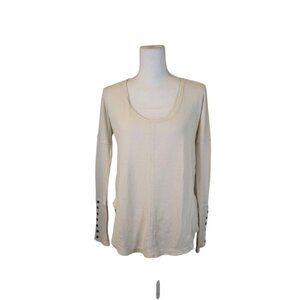 Lucky Brand Waffle Knit Top Size Small Cream Casual Bohemian