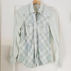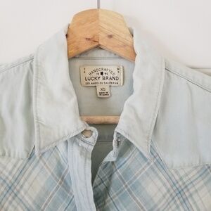 Lucky Brand Washed Blue Plaid Button Down Size XS
