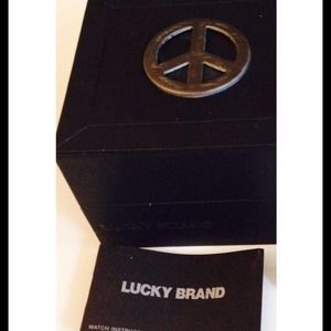 This is a great Lucky brand watch. Gold with brown leather . Original box and owners manual. Great condition.