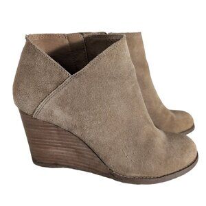 Lucky Brand Wedge Ankle Boot Bootie Women 8.5 Tan Boho Western Suede Yakeena