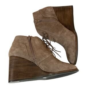 Lucky Brand Wedge Ankle Boots Shylow Suede Leather Women's Size 9 M