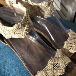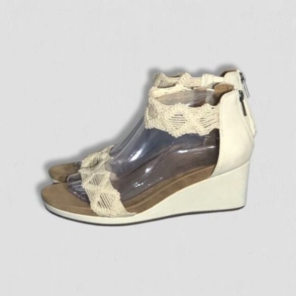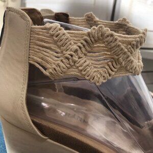 Lucky Brand Wedge Sandal Boho-Chic Macramé Strap Back Zipper Closure Cream 8.5
