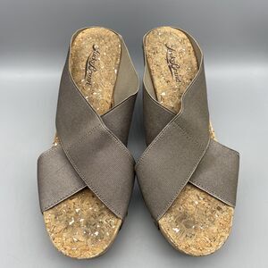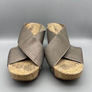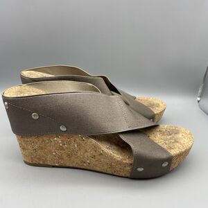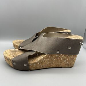 Lucky Brand Wedge Sandals Women’s Size 7.5 Miller 2 Cork Bronze Metallic Canvas