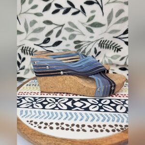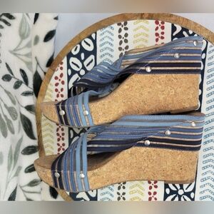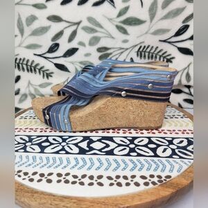 Lucky Brand Wedge Shoes Slides size 8 Blue Shades Cross Straps Cork Heel