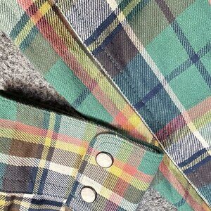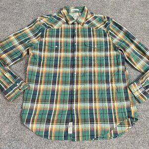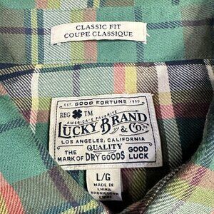 Lucky Brand Western Shirt L Green Flannel Classic Fit