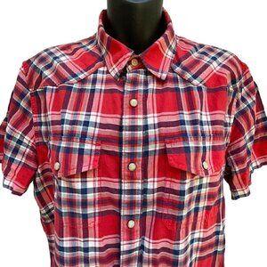 Lucky Brand Western Short Sleeve Pearl Snaps Classic Fit Plaid Red Blue Men’s M