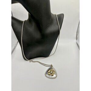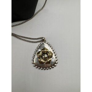 Lucky Brand Western Silver Tone Long Floral Pendant Necklace