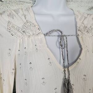 Lucky Brand White Boho Peasant Blouse Women’s Small Tassel Tie Long Sleeve