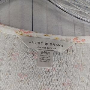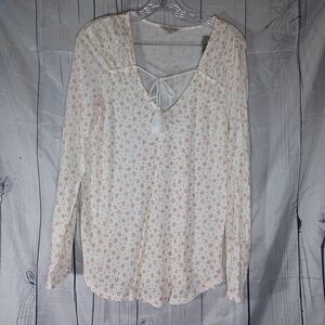 Lucky Brand White Calico Floral Long Sleeve Peasant Top w/ Tassel Tie Size M