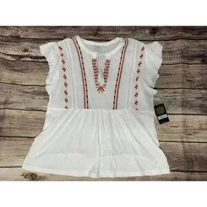 Lucky Brand White Embroidered Flutter Ruffle Cap Sleeves Top Small NEW