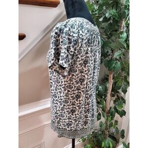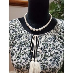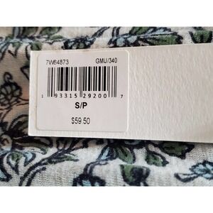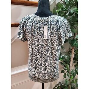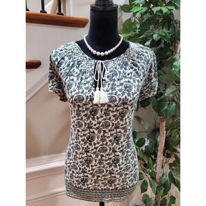 Lucky Brand White Floral Tassel Ties Round Neck Short Sleeve Top Blouse S/P