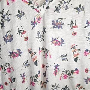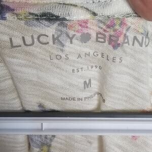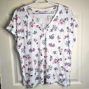 Lucky Brand White Floral V-Neck Blouse – Short Sleeve Casual Top, Women's Size M