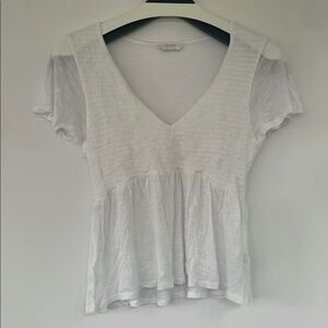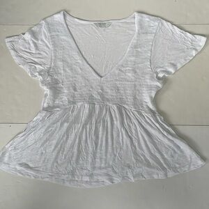 Lucky Brand White Smocked Peplum Short Sleeve Blouse Small