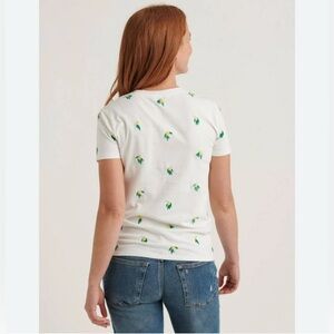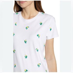 Lucky Brand White Tee with Green and Yellow Embroidery S