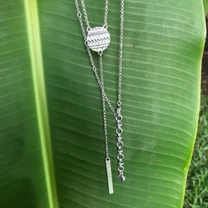 White coin pearl in silver-toned long chain with Paddle Necklace with 2 Inch Extender.