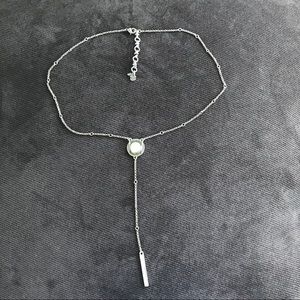 Cute!! Lucky Brand White/Silver Silver-tone Pearl Drop Necklace.