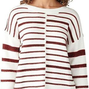 Lucky Brand White Knit Textured Stripe Crew Neck Sweater Sz S