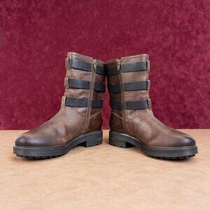 Lucky Brand Wmn Cheviss Brown Leather Zip Moto Ankle Boots 8.5US EUR 39.5