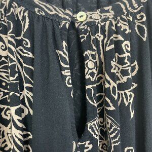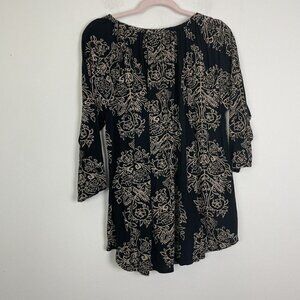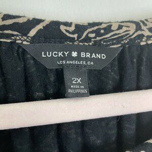 Lucky Brand Woman’s Plus Black Tan Floral Boho Keyhole Top Long Sleeve Size 2X