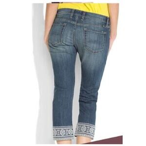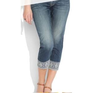 Lucky Brand Women 4/27 "Sienna Weekender Crop" Embroidered Hem Denim Jeans